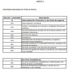 ACTIVIDADES ALCANZADAS POR EL LIMITE DE ACTIVOS PYMES
