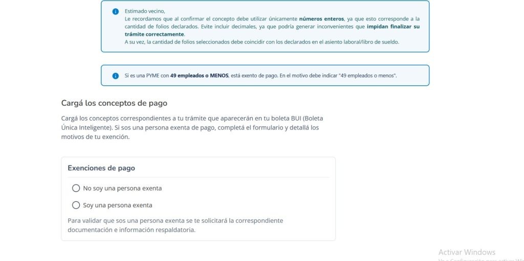 Las PYMEs con 49 empleados o menos están exentas de pago, debiendo indicar específicamente como motivo de exención “49 empleados o menos”.