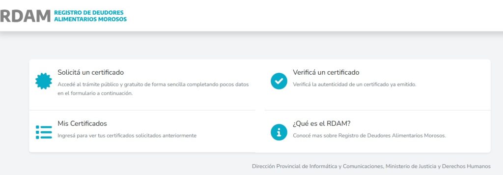 El trámite se inicia mediante la opción “Solicitá un certificado” en el siguiente link rdam.mjus.gba.gob.ar