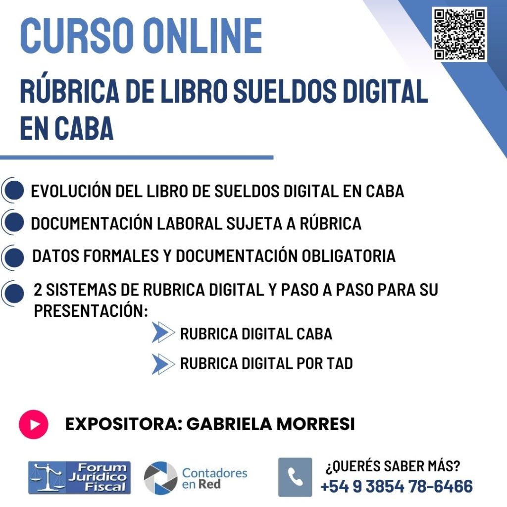 CURSO ONLINE. RÚBRICA DEL LIBRO SUELDOS DIGITAL EN CABA