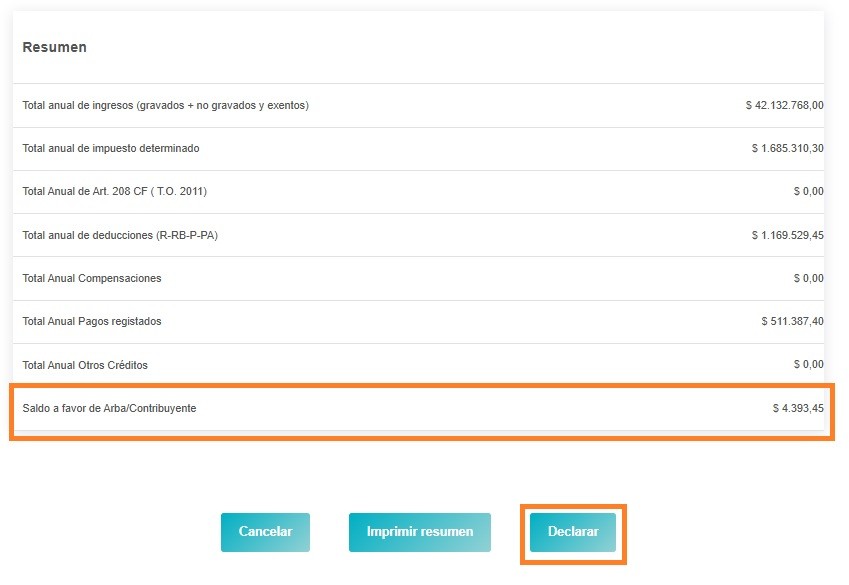 El sistema muestra un resumen de los datos y lo único que falta hacer es presionar el botón “Declarar” para que la DJ este presentada.