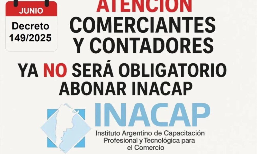 En función de las inquietudes generadas como consecuencia del dictado del Decreto 149/2025, hacemos saber que los aportes al Instituto Argentino de Capacitación Profesional y Tecnológica para el Comercio (INACAP) se deberán seguir realizando sin ningún tipo de modificaciones; ello es así ya que las disposiciones del mencionado Decreto, en el supuesto que sea aplicable, cobrarán vigencia según lo estipulado en el art. 3. Durante dicho lapso desde el Instituto se analizará en detalle el contenido y alcance de la norma, luego de lo cual informaremos debidamente las conclusiones alcanzadas”, reza el aviso publicado en https://institutocap.org.ar/inacap/home
