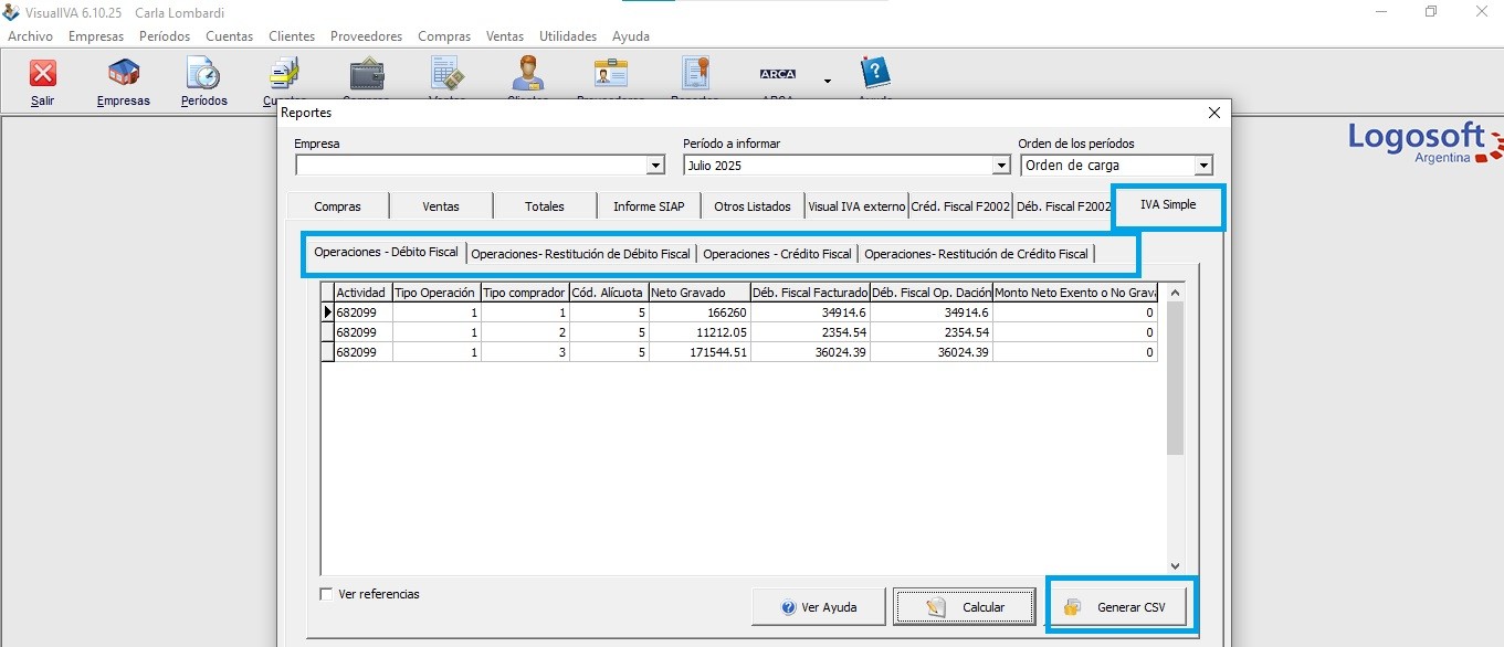 En mi caso, y sé que varios de los que me leen también, uso el sistema Visual IVA, que ya incorporaron como última actualización: una nueva pestaña “IVA Simple” en la sección de Reportes, pensada para facilitar la generación de archivos exigidos por ARCA para la apertura de otros conceptos.