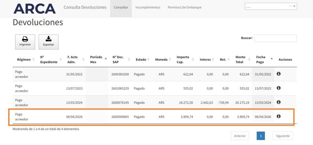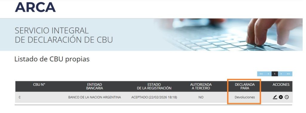 - Declaración de CBU: Es fundamental tener informada una CBU en el servicio “Declaración de CBU”, asegurándose de que esté tildada específicamente para la opción de “Devoluciones“.