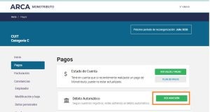 - Desde el Portal de Monotributo: Ingresar con clave fiscal, ir a la sección “Pagos” y seleccionar “Débito automático”.