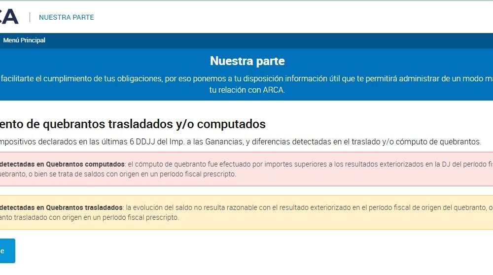 Desde “Nuestra Parte” las Personas Jurídicas ahora podrán ver las inconsistencias en quebrantos y realizar el seguimiento de quebrantos trasladados y/o computados.